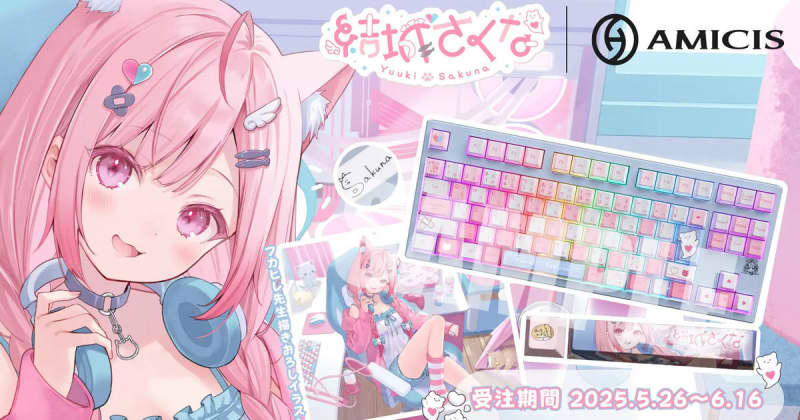 AMICISからVTuber「結城さくな」さんとコラボしたオリジナルキーボード&マウスパッドが登場!5月26日より予約受付開始 AMICISVtuberキーボードゲームマウスパッド商品情報結城さくな結城さくな限定コラボデバイス ゲーム 2025/05/27